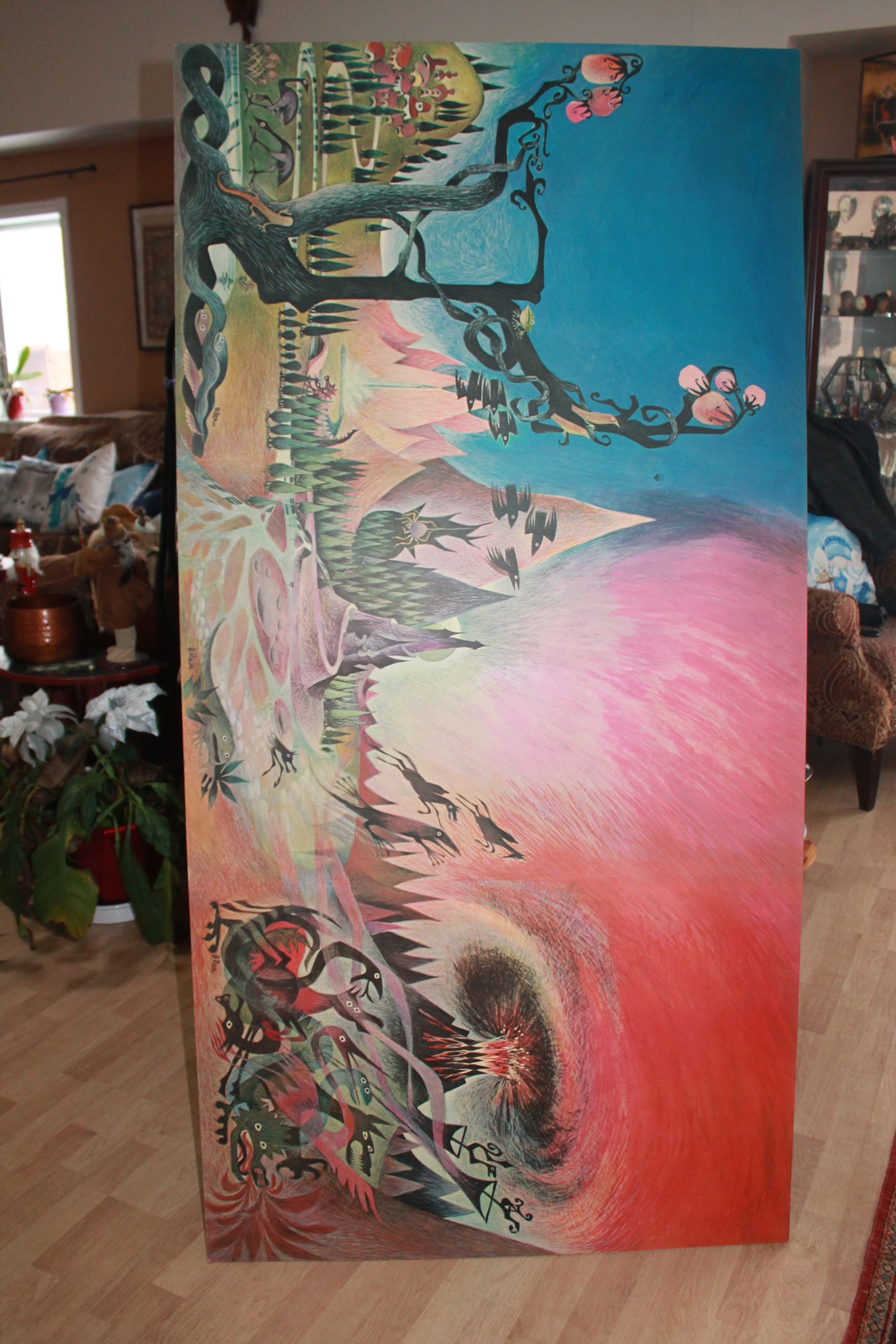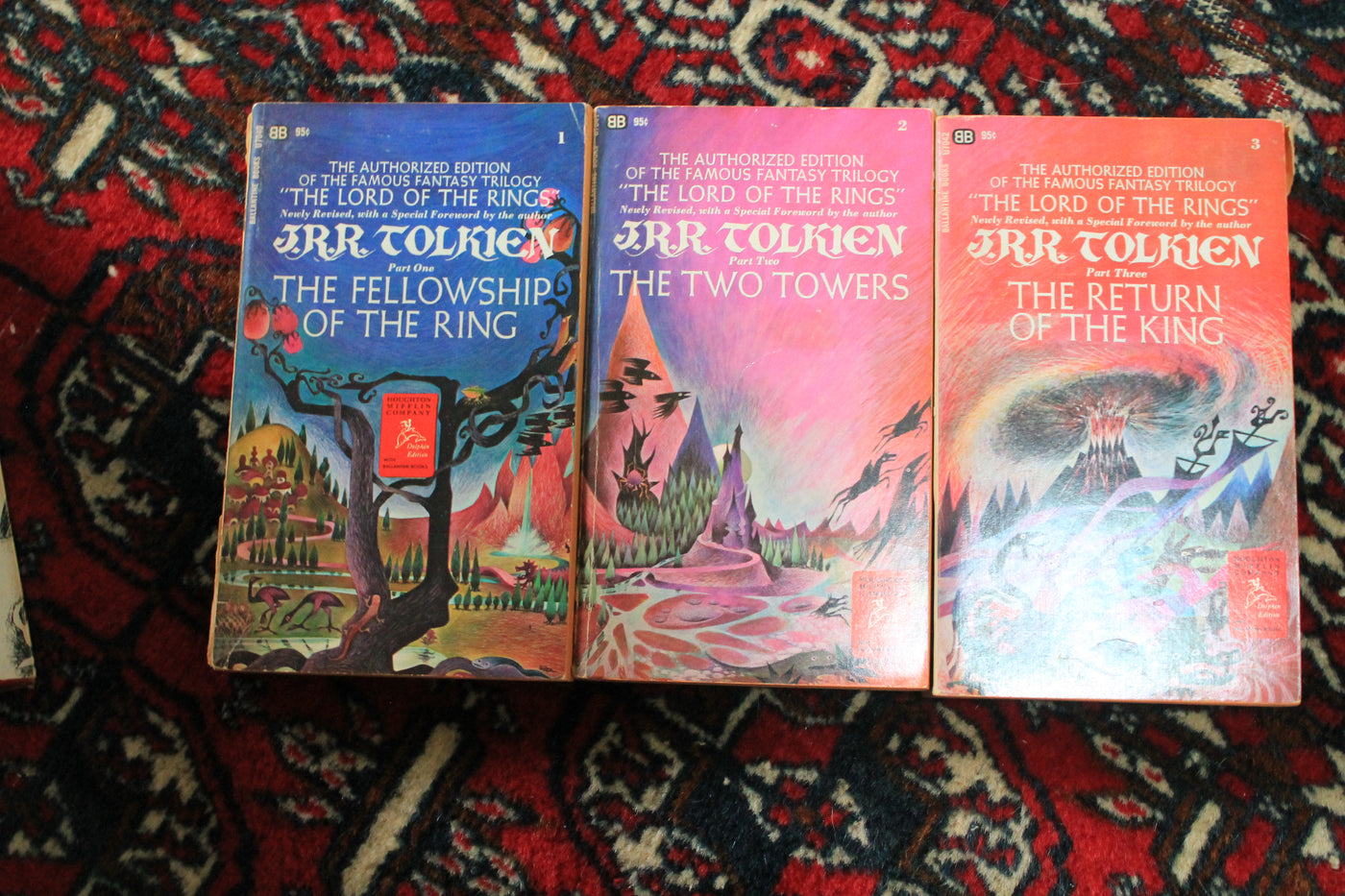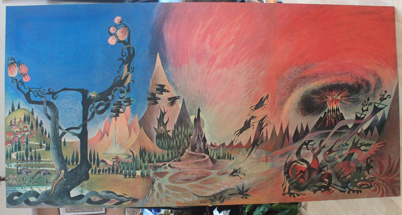 This set includes a large poster app 5'6" x 2', mounted as shown, and in excellent condition. The poster depicts all three book covers, side by side. Books are third printing Canadian, 1966 and in good condition.