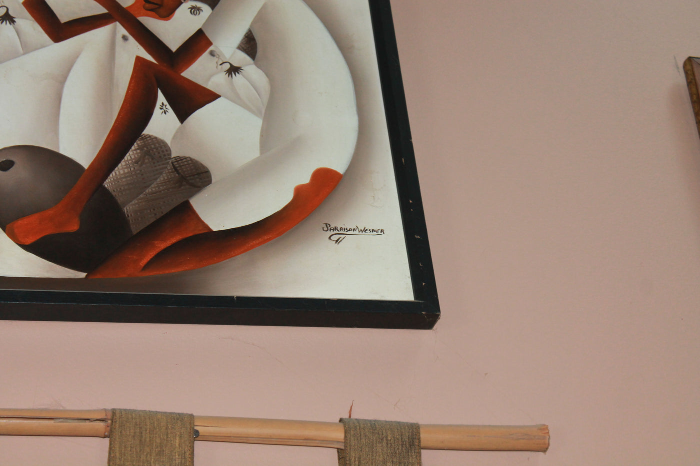 Print by Haitian artist Paraison Wesner. Cubist style. App 30x15".