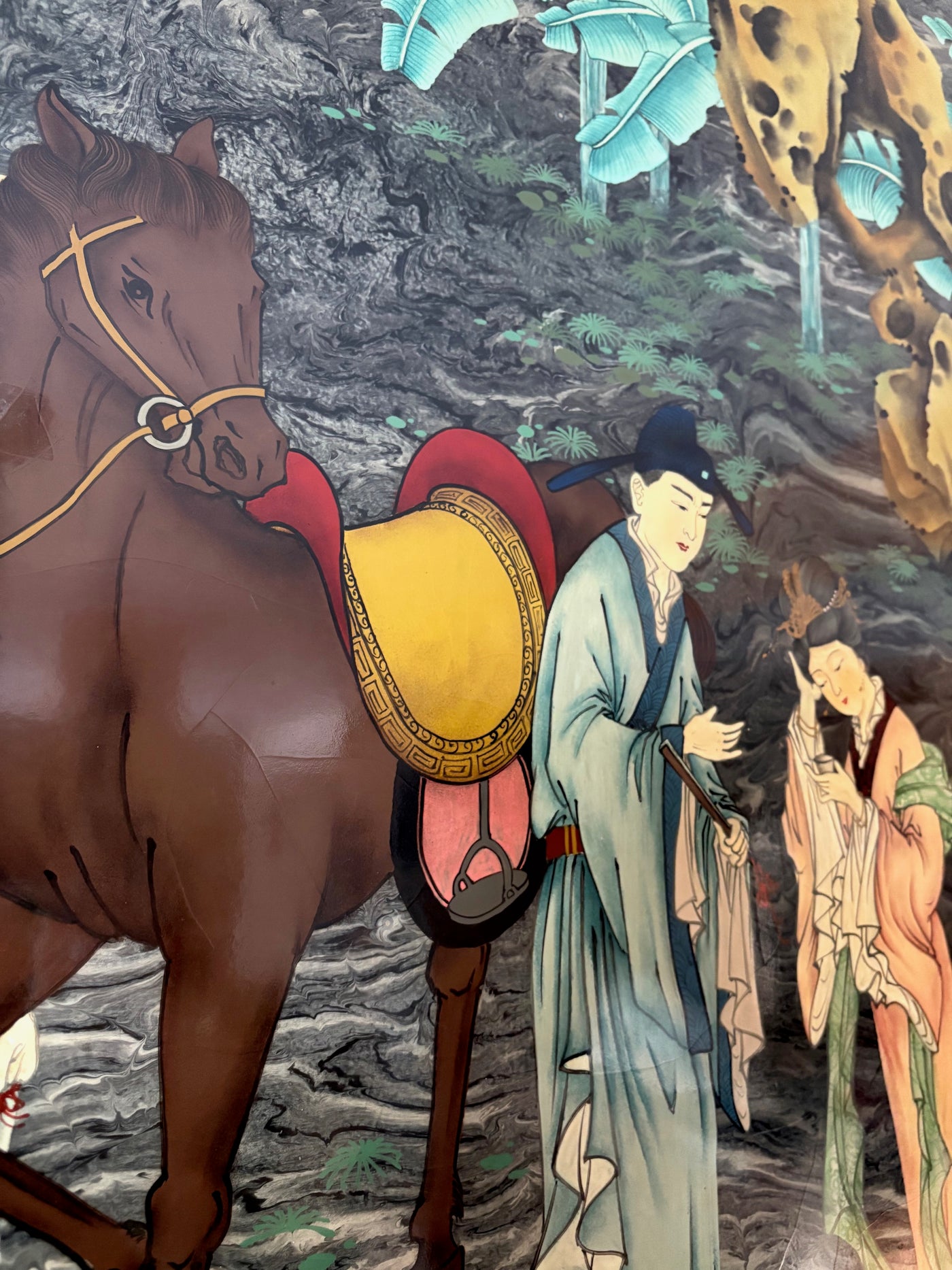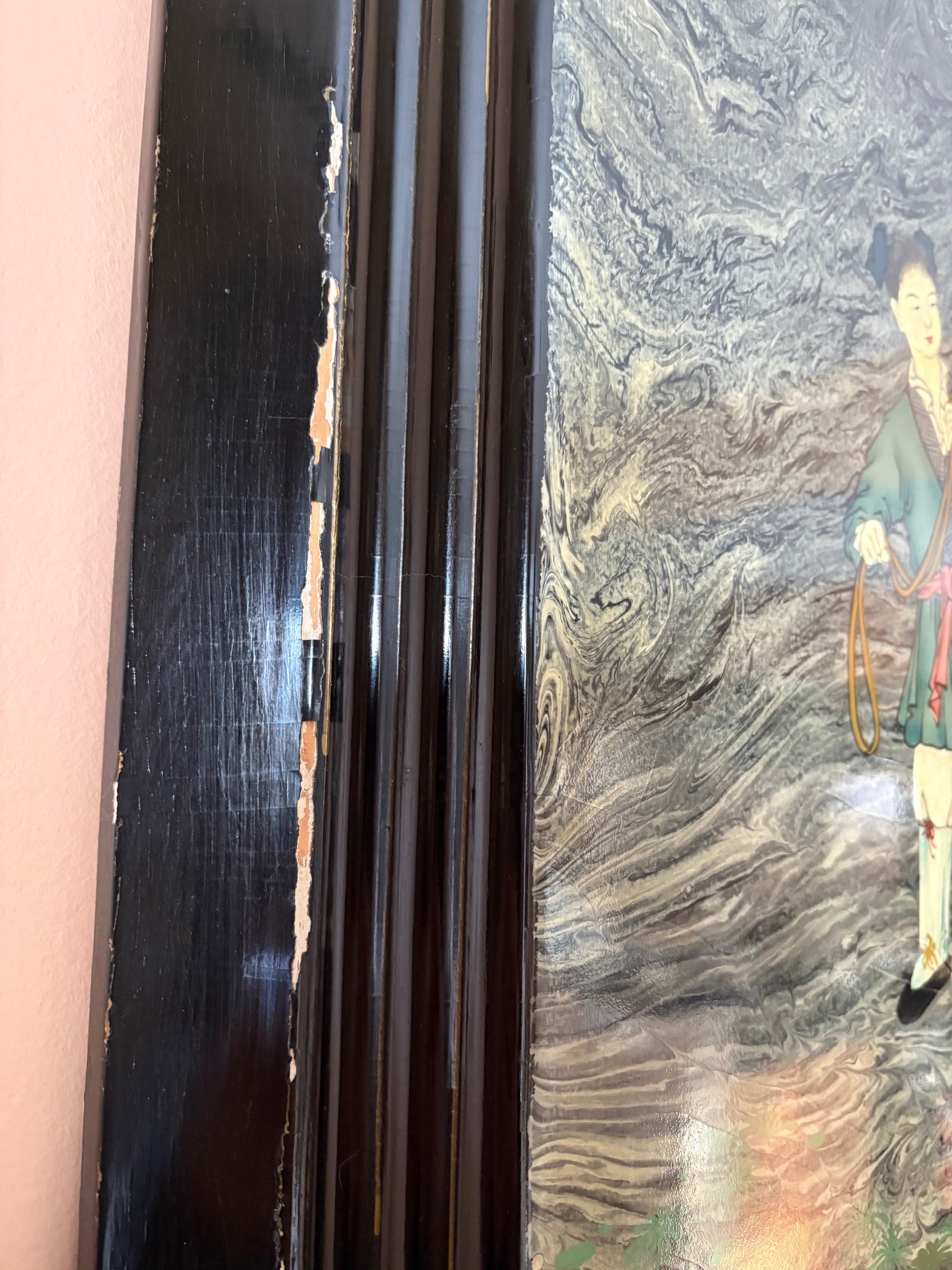 Lacquered Oriental painting on wood