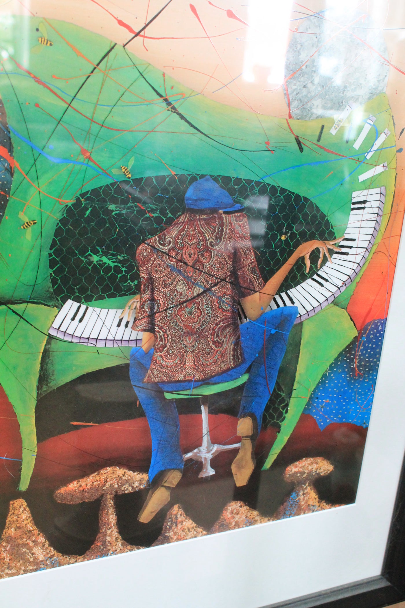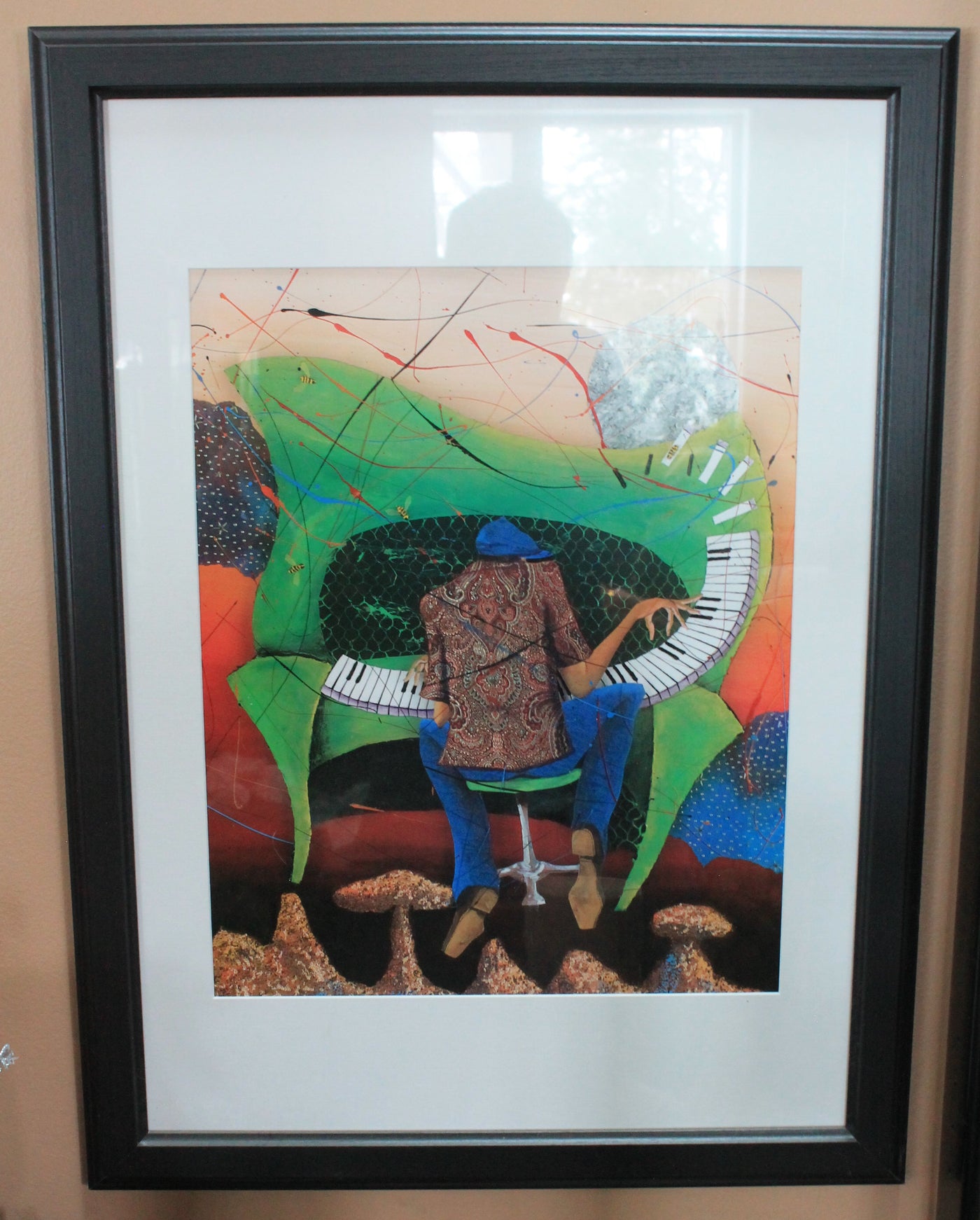 "Keys to the Soul" in green, artist Marcus Glenn. App 32x16" framed.
