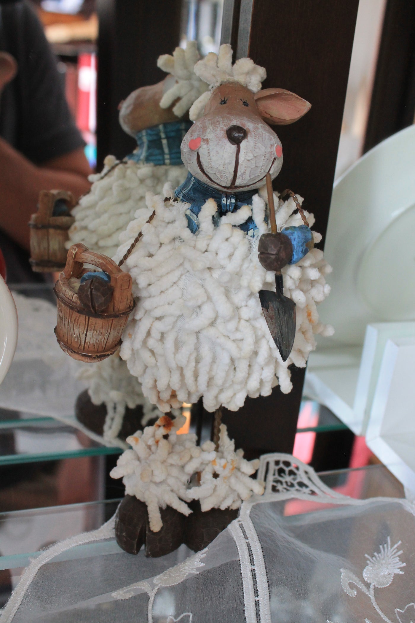 Three wooden sculptures, plate, crystal bell, porcelain.
